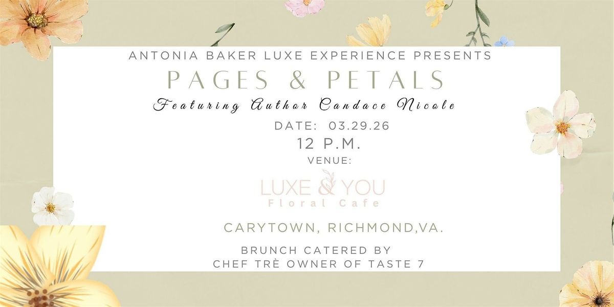 The Antonia Baker Experience proudly presents Pages & Petals, hosted at Luxe & You Floral Café. This unique gathering blends the love of books, meaningful conversation, and a relaxing floral atmosphere.