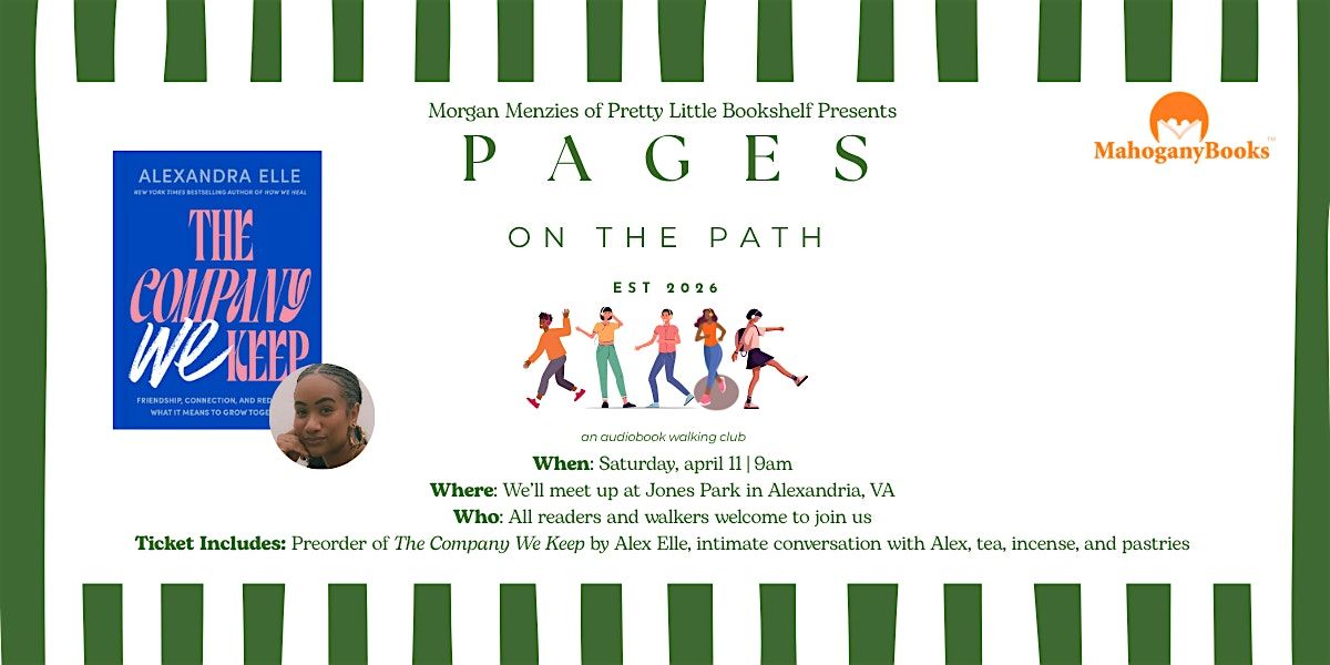 Please arrive by 9am as our walk will start promptly at 9:15am. Your ticket includes a preordered signed copy of The Company We Keep by Alex Elle from Mahogany Books, an intimate conversation with Alex Elle, tea, incenses, and pastries. Tickets are required for all attendees.