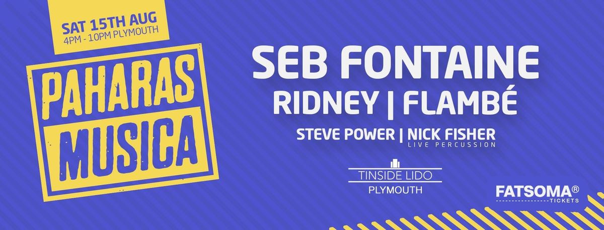 Paharas Musica and DancersHip team up for an absolute belter day & night fiesta at one of the UK's most beautiful dance floors.Tinside Lido will host the return of the Big Man to Britain's Ocean City! SEB FONTAINE rolling in with the musical heavy ordinance along side Paharas Musica Boss and 3 x time winner of the Pete Tong Essential New Tune, Ridney.