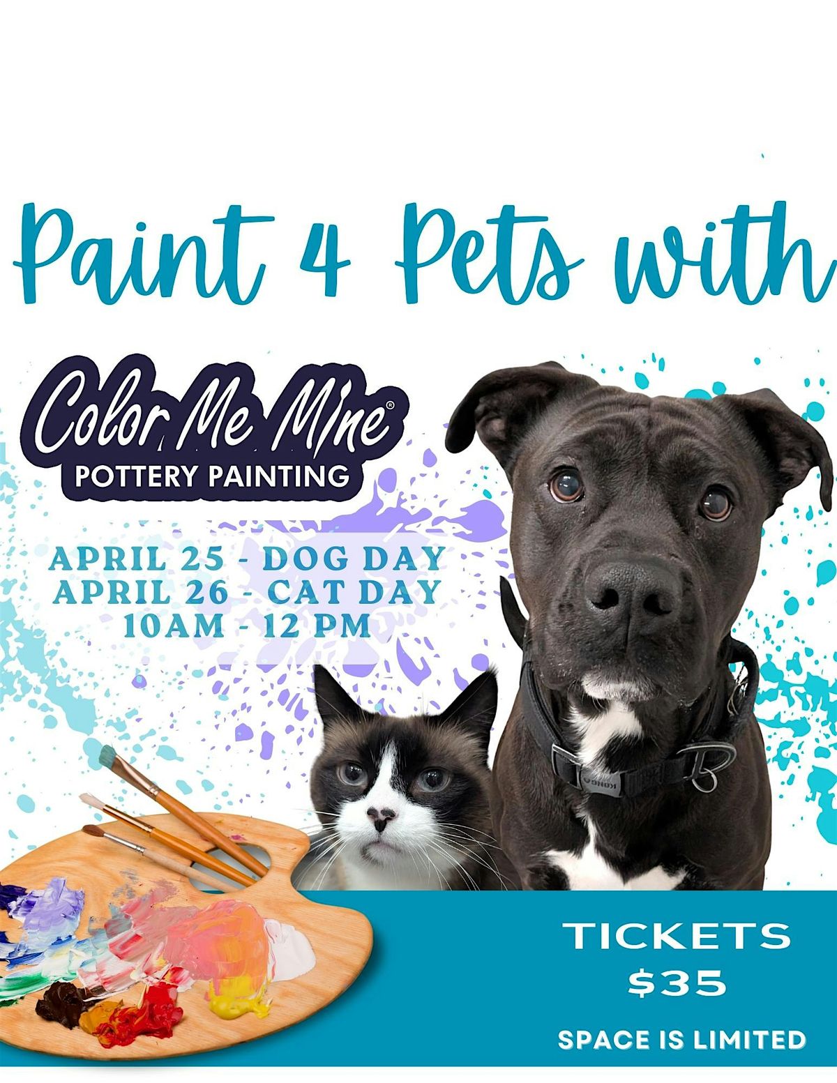 April 25 is DOG DAY your ticket for this day will include one preselected dog figure to paint.