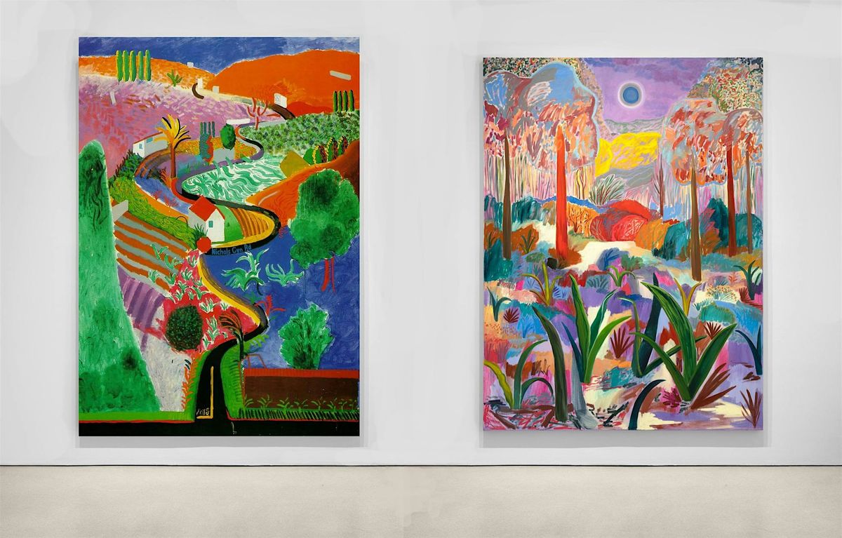 Shara Hughes is a contemporary landscape painter who has been hugely influenced by Hockney. She uses dizzying brushwork, vibrant colors, and shifting perspectives to make paintings that depict kaleidoscopic visions of flora and fauna in the process of constant evolution.