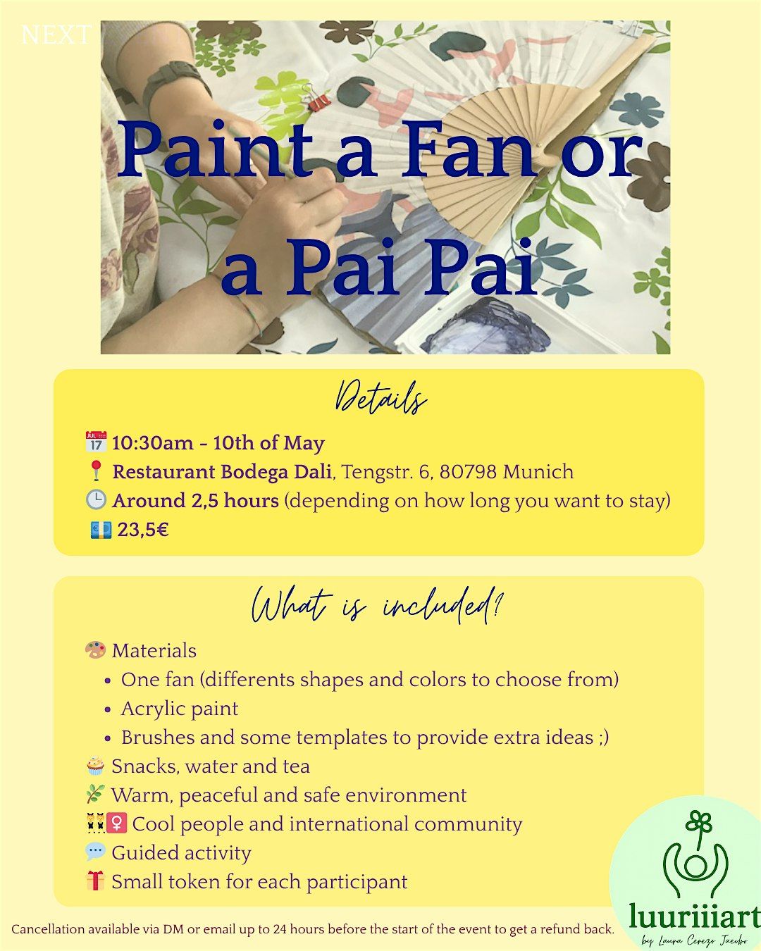 Join this workshop to paint your own Fan or Pai Pai, thoughtful mother's day present! Enjoy surrounded by an amazing community.About this Event