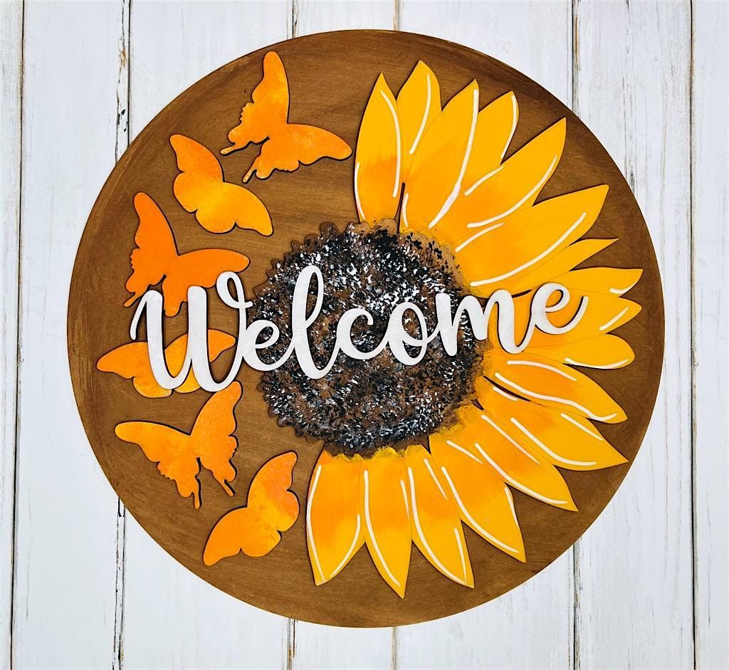 Paint a wooden welcome sign. There will be samples and stencils available for your use. (The images above are for inspiration)