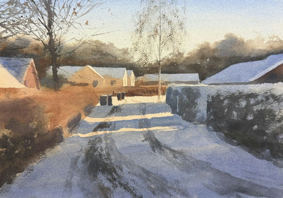 Coming into the cold winter months, why not spend a Saturday learning how to paint a beautiful urban snow scene? Watercolour lends itself to this type of painting, utilising its transparent nature to create a sense of light within the blue shadows of the scene.