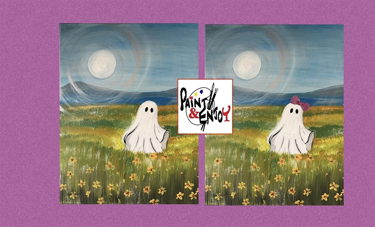 Paint our cute ghost with his kitty, choose your own favorite colors. Artist Connie Higgins will guide you step-by-step, so you’ll go home with a beautiful masterpiece you’ll be proud of.