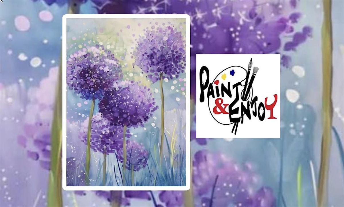 Paint & Enjoy at West York! Create purple hydrangeas step-by-step. Perfect for date night or girls’ night—wine, music, and creativity!