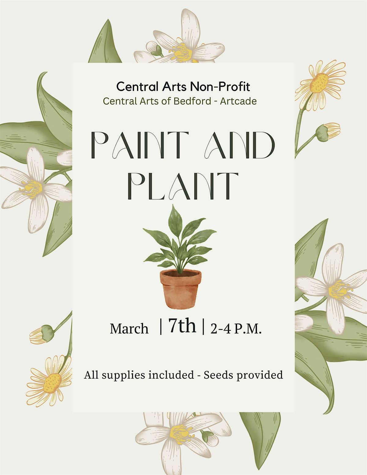 Join Central Arts for a relaxing Paint & Plant Workshop on March 7th from 2–4 p.m. for $30! Enjoy a creative, hands-on experience where you’ll paint your own planter and choose from a variety of seeds to plant and grow at home.