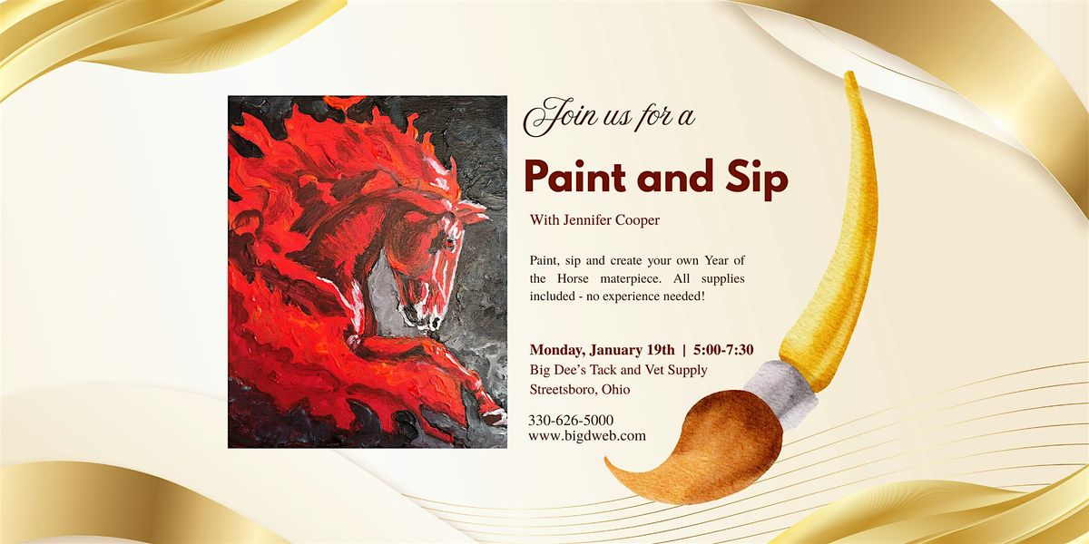Sip, paint, and unwind while customizing your artwork. Finishing touch tips: Customize your painting with 2026 Fire Horse (shown) or Asian element templates including Water, Metal, Wood, or Earth. Space is limited, so reserve your spot early!