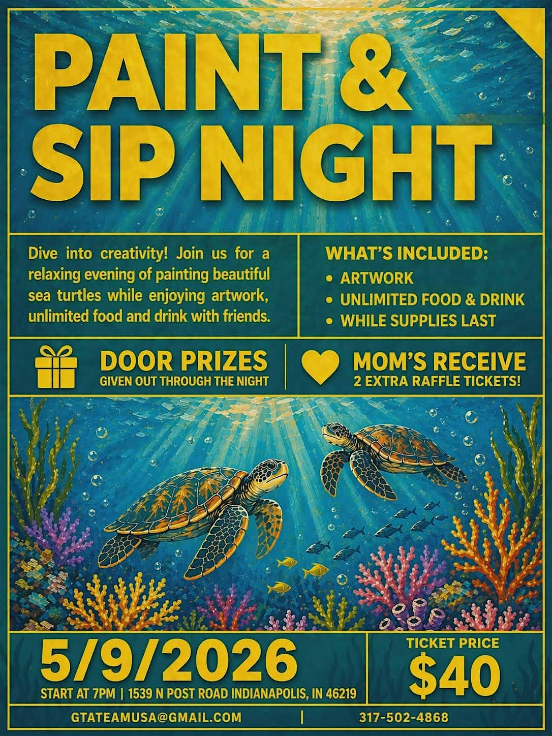 Spend the evening painting beautiful sea turtles in a relaxed, ocean-inspired atmosphere while enjoying food, drinks, and time with friends.