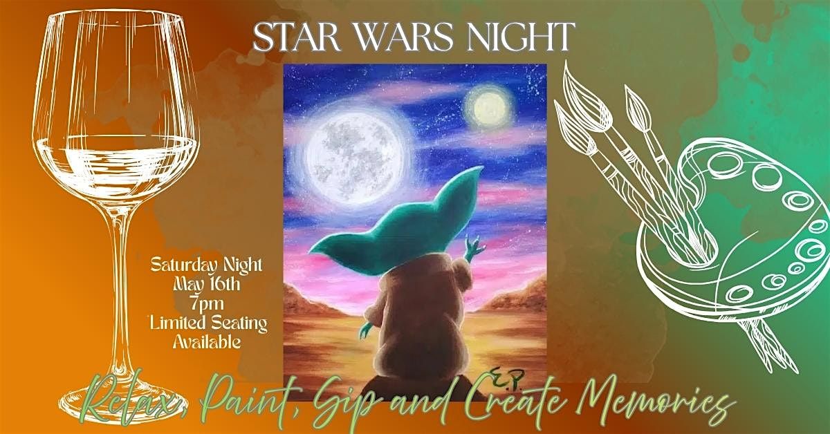 Join us for an epic in-person evening where art meets the galaxy far, far away! Grab your favorite drink and channel your inner Jedi as you create your own masterpiece. Whether you're a padawan or a master, it's all about fun, painting, and good vibes. Don't miss this chance to sip, paint, and geek out with fellow Star Wars fans in Columbus!