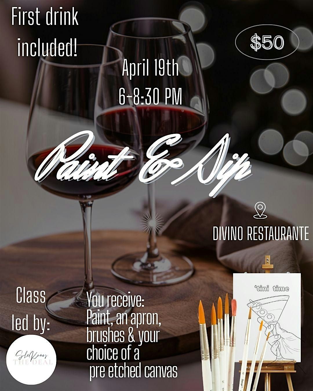 Join us for a fun and relaxed afternoon at DIVINO Ristorante Enoteca! Whether you're a pro or just want to try something new, this Paint and Sip event is perfect for letting your creativity flow while enjoying great vibes.