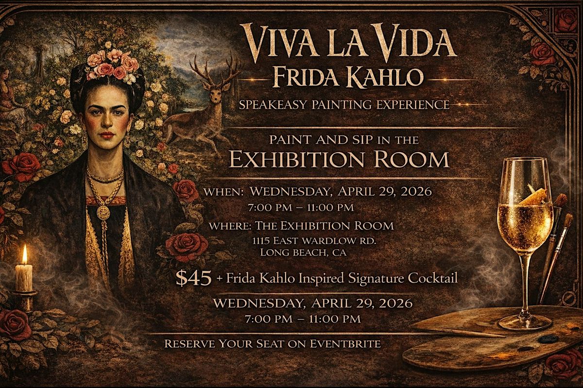 The Exhibition Room invites you to “Que Viva La Vida de Frida Kahlo!,” an intimate, immersive paint-and-sip experience inspired by legendary artist Frida Kahlo. Set inside Long Beach’s most alluring hidden lounge, guests will be guided through the creation of their own interpretation and take home a one of a kind masterpiece of the famed and beloved Frida Kahlo — no prior painting experience required.