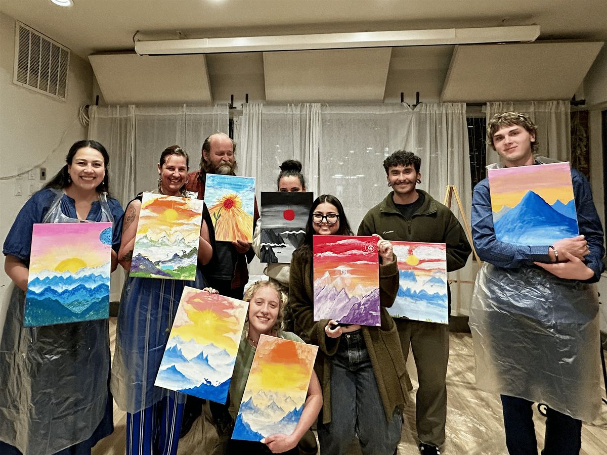 Our events typically host around 10 or more participants, creating a casual, social environment where you can relax, learn a few painting techniques, and connect with others.