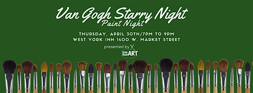 Starry Night is the first in a series of Paint and Sip events with Kate Rush Art hosted by the West York Inn on Thursday, April 30th from 7pm to 9pm
