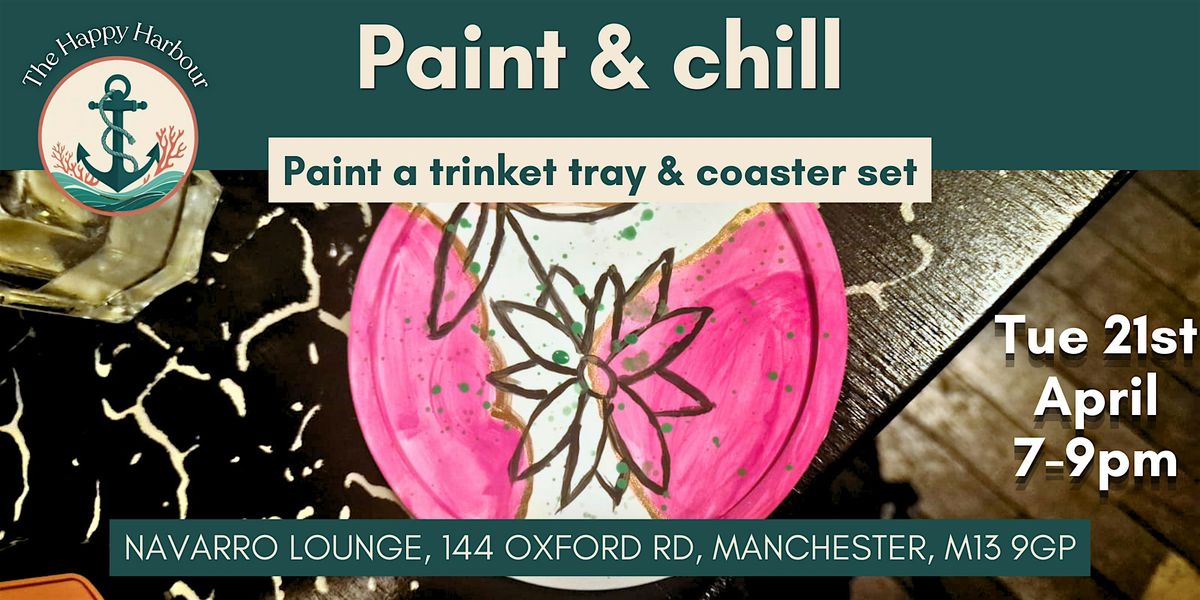 ✨ Join us in Manchester for a paint & chill session where you can paint & decorate your own trinket/jewellery tray and coaster set, all handmade by The Happy Harbour who'll be on hand with inspiration, pattern ideas, calming vibes, and a lovely welcoming atmosphere.