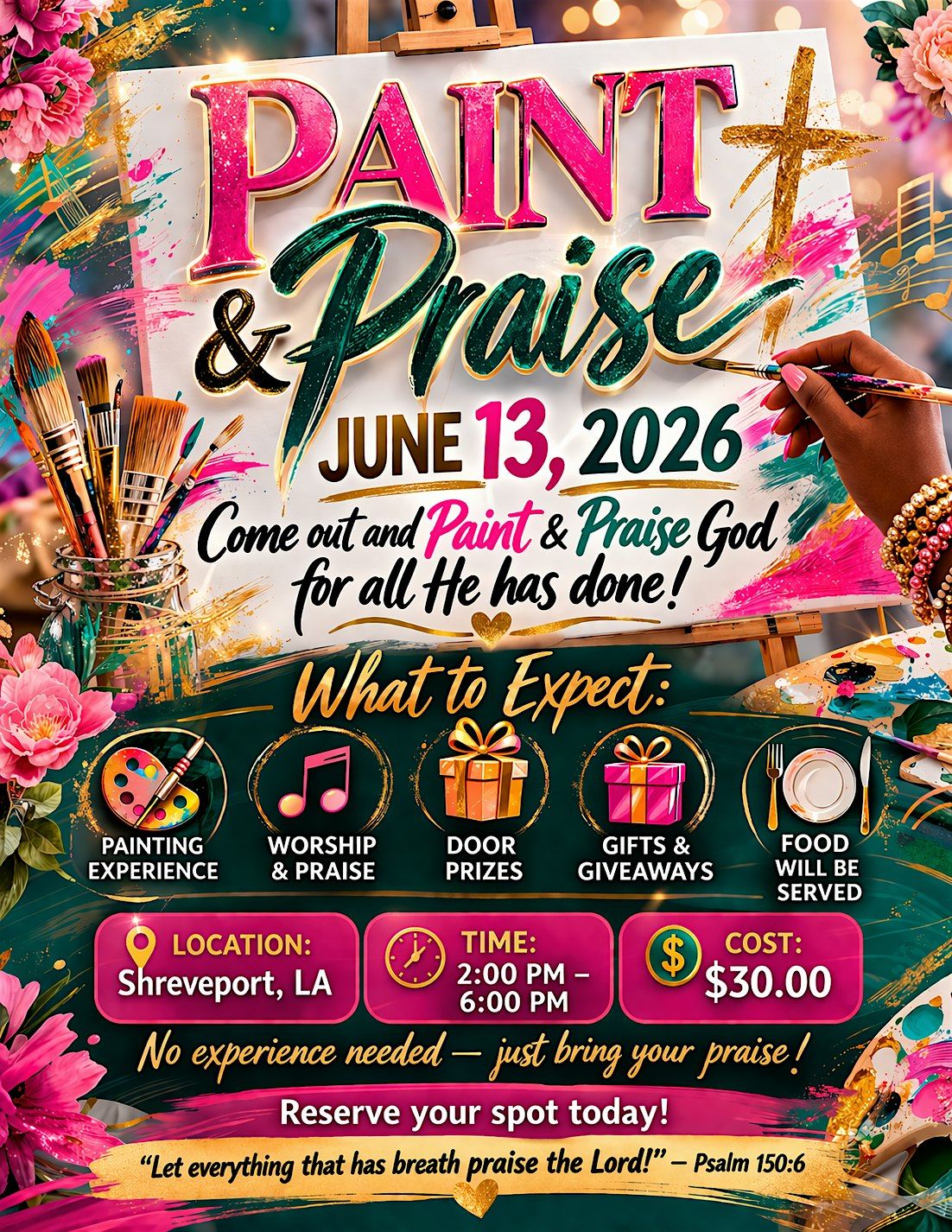 Join us for an uplifting afternoon of creativity, worship, and connection at our Paint & Praise event! This is more than just painting—it’s a moment to relax, release, and praise God through art.