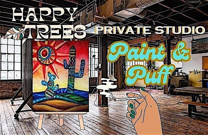 Happy Trees is now offering Paint & Puff classes on select nights in our Private Studio in the West Bottoms. Our spacious loft studio is right upstairs from The Ship. You must be 21+ to attend this class!