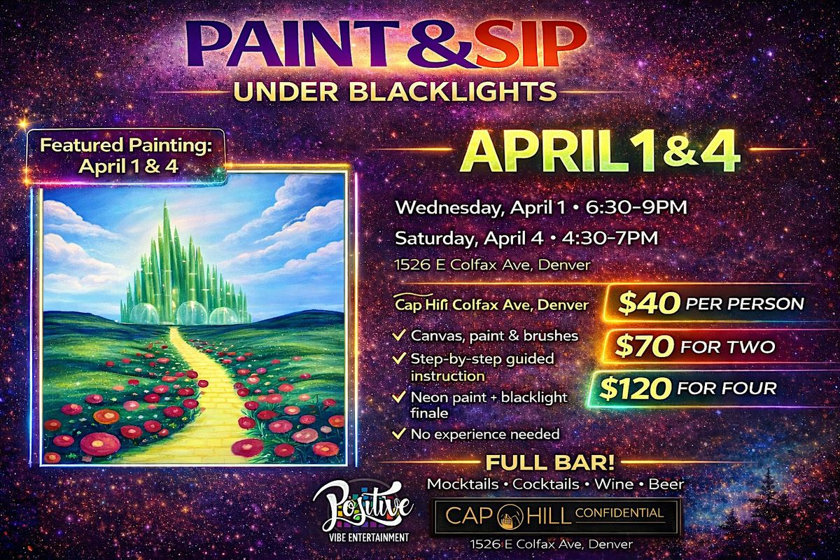 Glow Paint & Sip under blacklights! April 1st and 4th at Cap Hill Confidential. Neon art + full bar. Reserve your seat today!