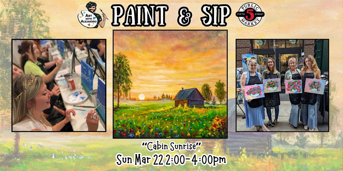 Paint a peaceful Cabin Sunrise glowing with warm morning light and cozy mountain vibes. Perfect for a relaxing Sunday afternoon. Beginner-friendly with step-by-step guidance and all materials included. Reserve your seat today—limited spots available!