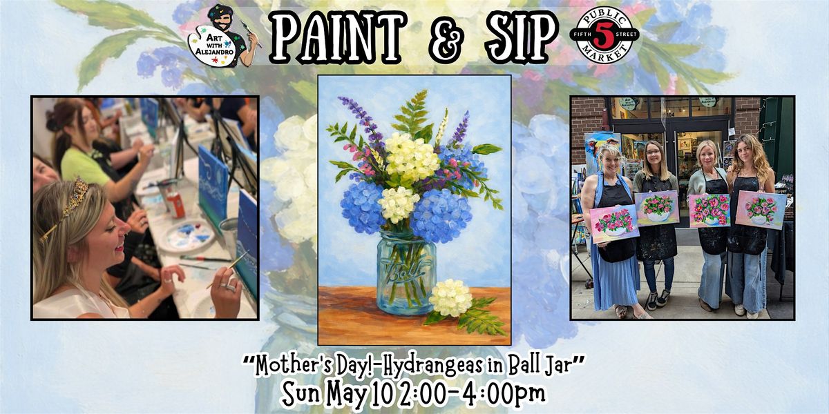 🌸 Paint & Sip “Mother’s Day! – Hydrangeas in Ball Jar”