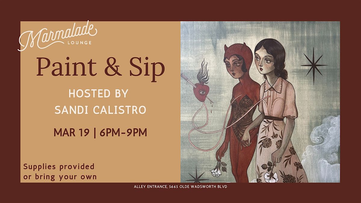 Join us for a creative evening at Marmalade Lounge as we blend art, conversation, and craft cocktails during our Paint & Sip night with local artist Sandi Calistro.