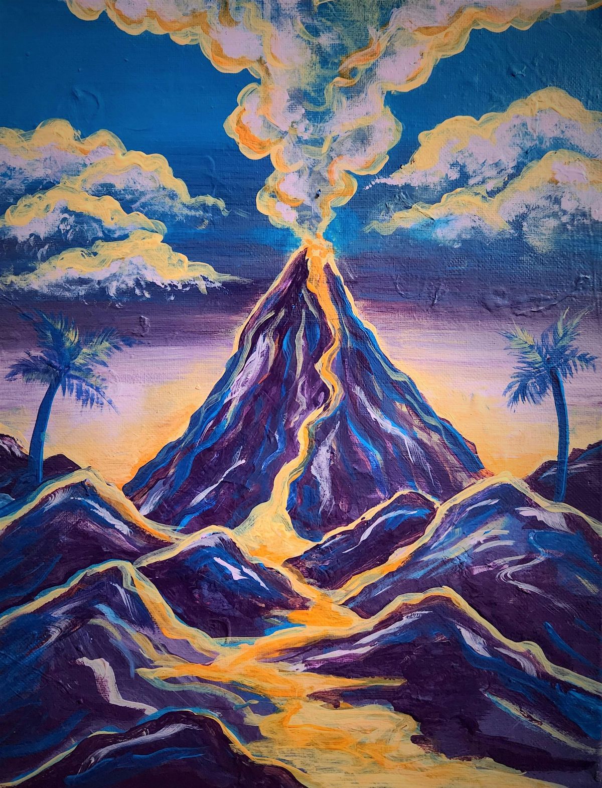 Join us for a fun Paint & Sip class led by local artist Tessa LeBaron, who will guide you through creating your own tiki-themed work of art while you enjoy a tiki cocktail, included with your ticket along with all of the supplies needed. The February class will feature this awesome volcano painting to bring out your inner Pele!