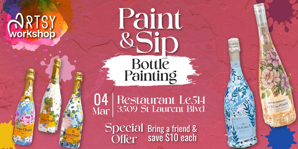 Une expérience Paint & Sip créative et relaxante où vous peindrez et personnaliserez une bouteille neuve de votre choixdans une ambiance conviviale et chaleureuse.