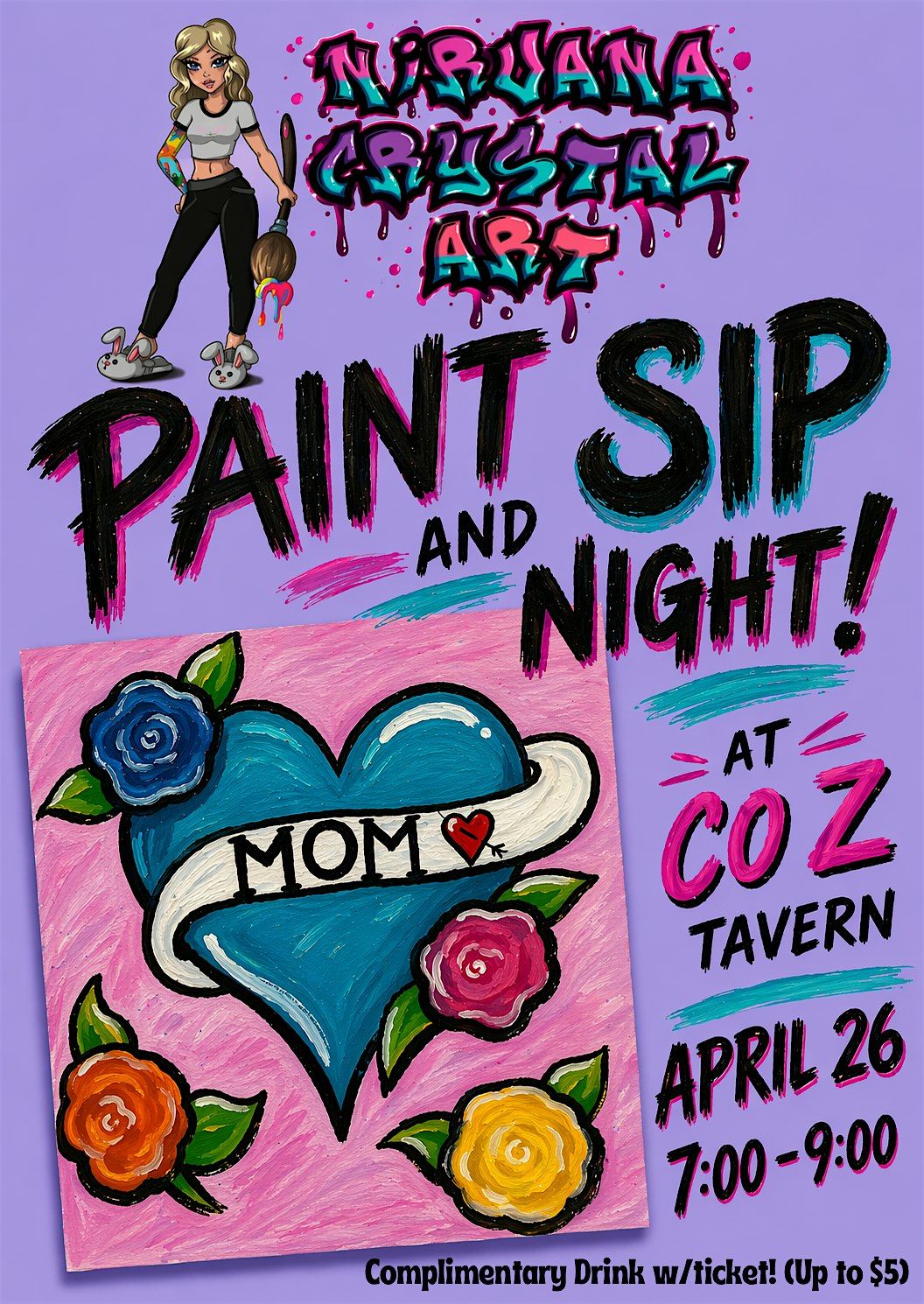 Get ready for a fun-filled evening of creativity and chill vibes! Join us in person to paint your own masterpiece while sipping on your favorite drink. No experience needed—just bring your good mood and let the colors flow. Whether you're a seasoned artist or just looking for a cool way to hang out, Paint & Sip Night is the perfect way to unwind and make new friends. See you there for laughs, paint, and great company!
