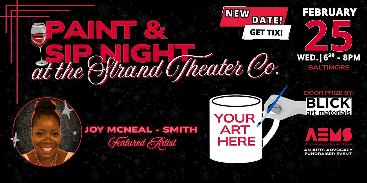 The AEMS Paint & Sip Night, an arts advocacy fundraiser in support of Maryland public schools, has been rescheduled for February 25, 2026 at the Strand Theater after delays due to inclement weather and icy conditions.