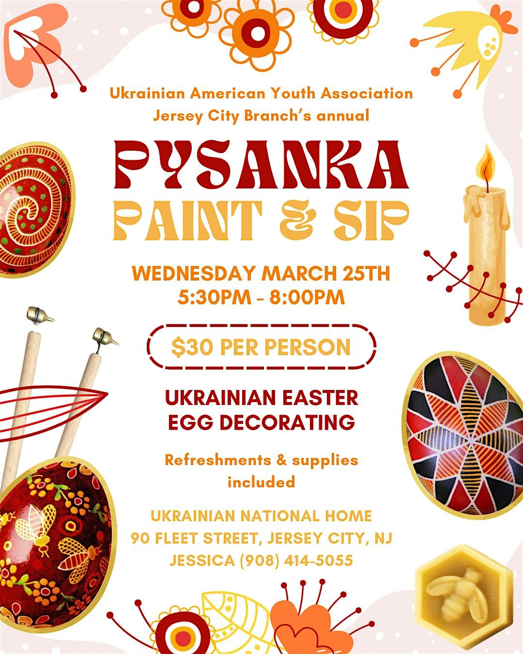 Join the Ukrainian American Youth Association of Jersey City for a Pysanka Paint & Sip!