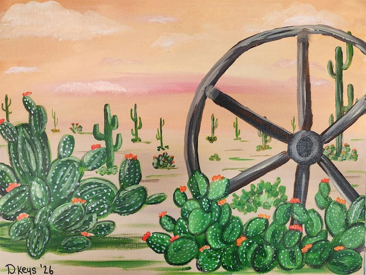 Unleash your creativity painting WAGON WHEEL on a16X20 canvas while enjoying a relaxing atmosphere with friends and fellow art enthusiasts. No experience needed - our talented instructors will guide you every step of the way.