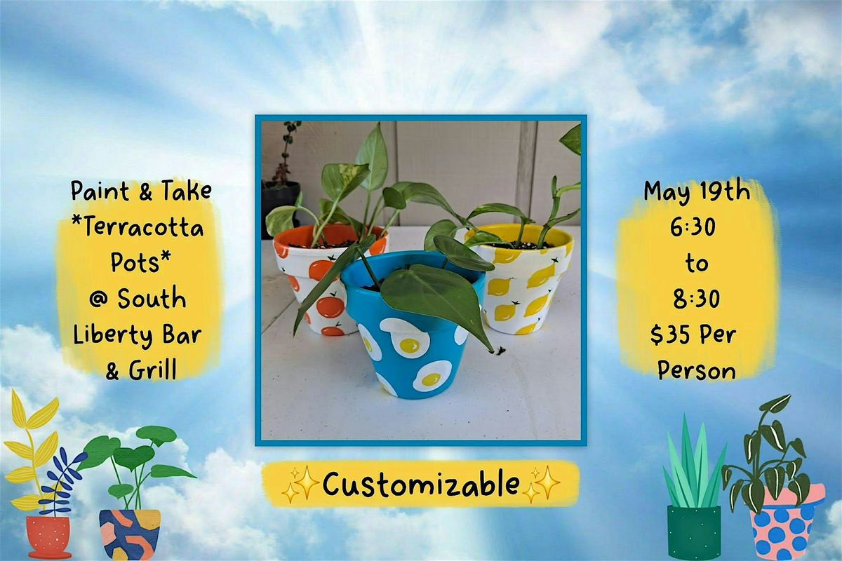 This is a great low-pressure DIY night at South Liberty Bar & Grill! Each attendee will get (2) 4" terracotta pots to paint on, creating custom patterns or following along with the instructor! There will be a large array of paint colors, brush sizes, and a handful of surprise embellishments you can decorate your finished pot with.