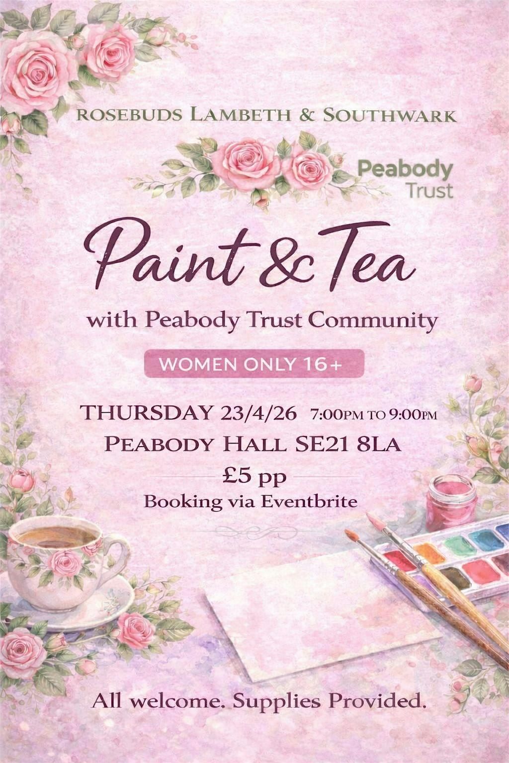 This is a women-only event (16+). Join us for a relaxing and creative evening hosted by Rosebuds, in collaboration with the Peabody Trust Community.