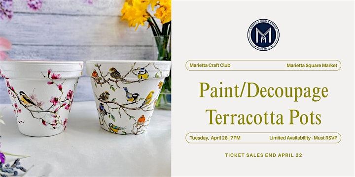 Hosted by Marietta Craft Club, this event is perfect for anyone looking to get creative! Whether you love bright florals, soft pastels, or a more minimal look, you’ll leave with a custom piece ready to style in your space or use for your next plant.