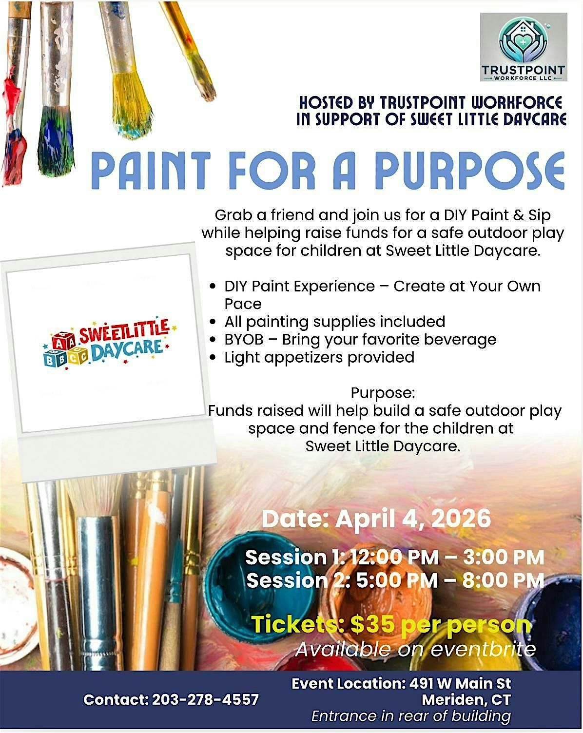 DIY Paint & Sip fundraiser supporting Sweet Little Daycare! Create, relax, and help raise funds for a safe outdoor play space for local chil