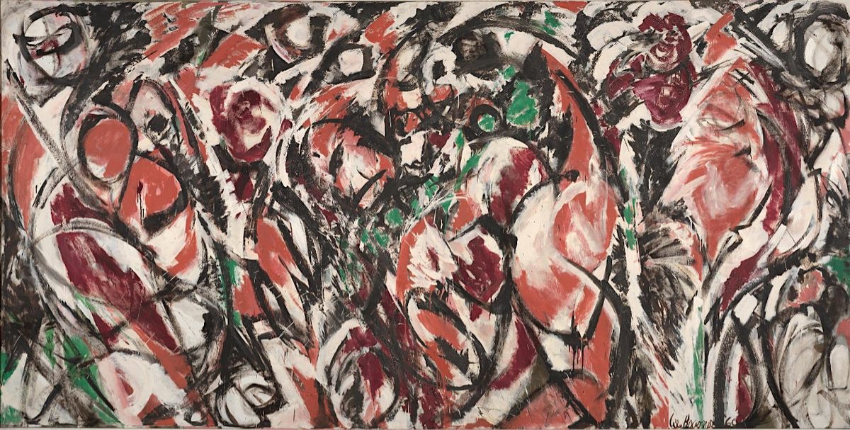 After the death of her husband Jackson Pollock, Lee Krasner took over his studio located in a barn on their property. With this expansion of studio space, she began creating large-scale paintings like Celebration, using expansive gestures to express her feelings on canvas.