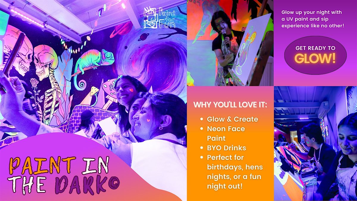 Paint in the Dark is the only event that mixes dancing and wine with glow-in-the-dark masterpieces. Think paint and sip meets retro disco. Book in your date and get ready to glow!
