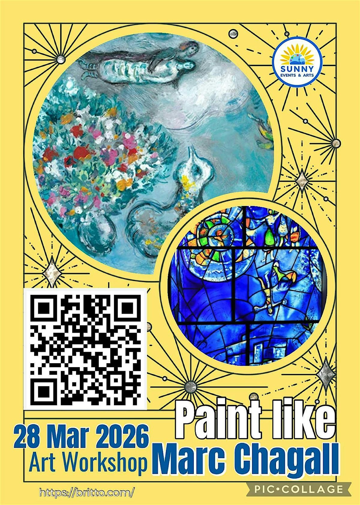 Step into the magical, poetic world of Marc Chagall, one of the most imaginative artists of the 20th century. Known for his floating figures, vibrant colors, and dreamlike scenes, Chagall blended memories, folklore, love stories, and symbolism into unforgettable works of art. In this inspiring hands-on workshop, you will create your own spring-themed composition filled with movement, emotion, and color.