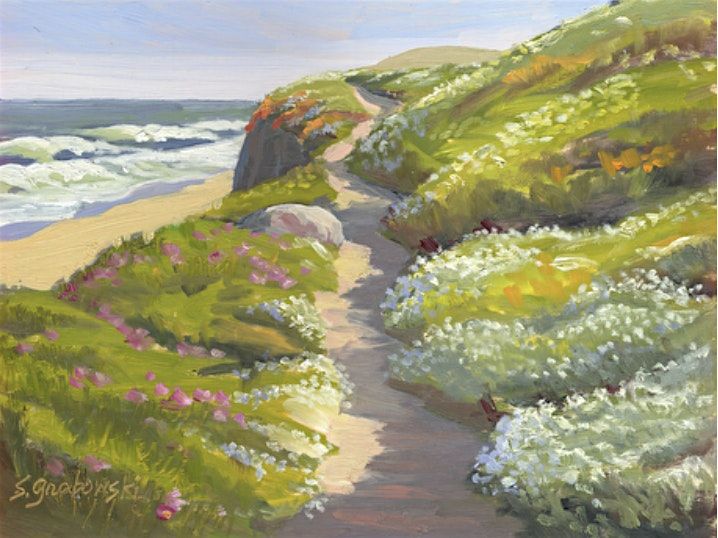 Susan Grabowski, a New Jersey native, spent 22 years on Cape Cod before relocating to the Bay Area in 1998. She discovered that the beauty, light and atmosphere of the Bay Area landscape changed her artist’s eye, resulting in a more colorful, “California Impressionistic” style.