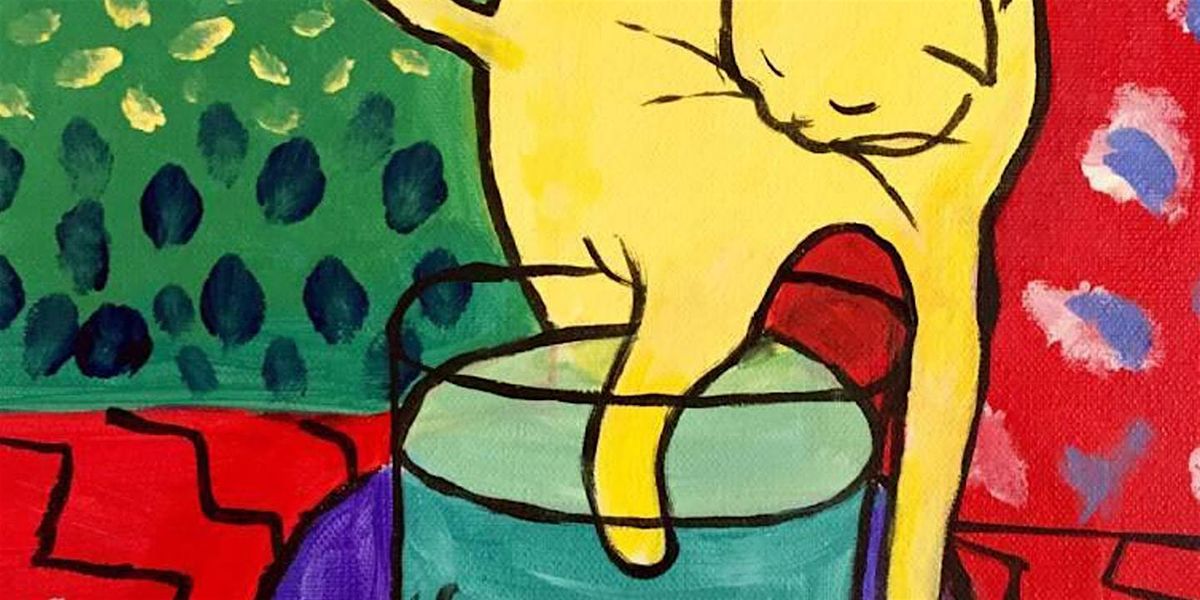Looking for a creative afternoon out in London? Join us for a sip and paint experience at The London Art Bar in Holborn! This event is inspired by Henri Matisse‘s Goldfish painting but with a playful cat added by an unknown artist! Express yourself with bright, bold colourful contours of the Les Fauves.