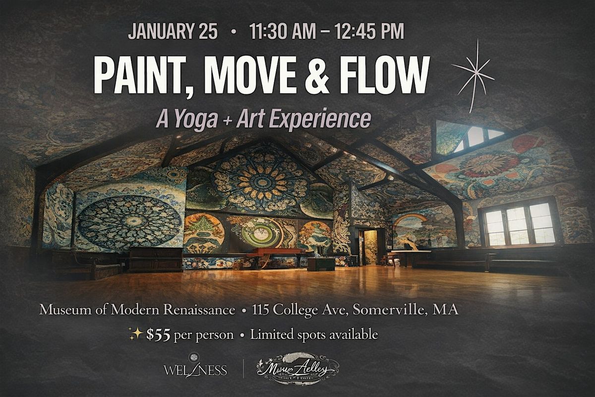 Paint, Move & Flow is a creative wellness experience held inside the Museum of Modern Renaissance in Somerville, MA.