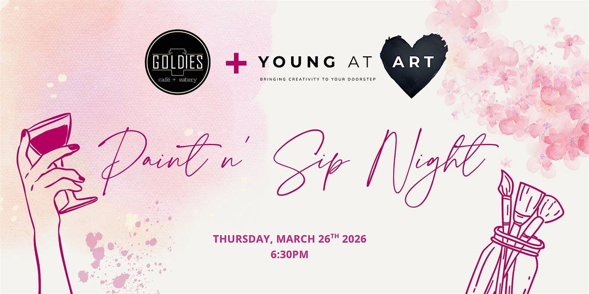 Join us on March 26, 2026 at 6:30 PM (ET) for a fun, relaxed evening hosted by Young at Art. Unleash your creativity while enjoying tasty bites and drinks at Goldies Cafe + Eatery. Whether you’re a painting pro or just looking to try something new, this is the perfect way to paint, sip, and unwind with friends. Don’t miss a night full of colours, laughs, and good vibes!