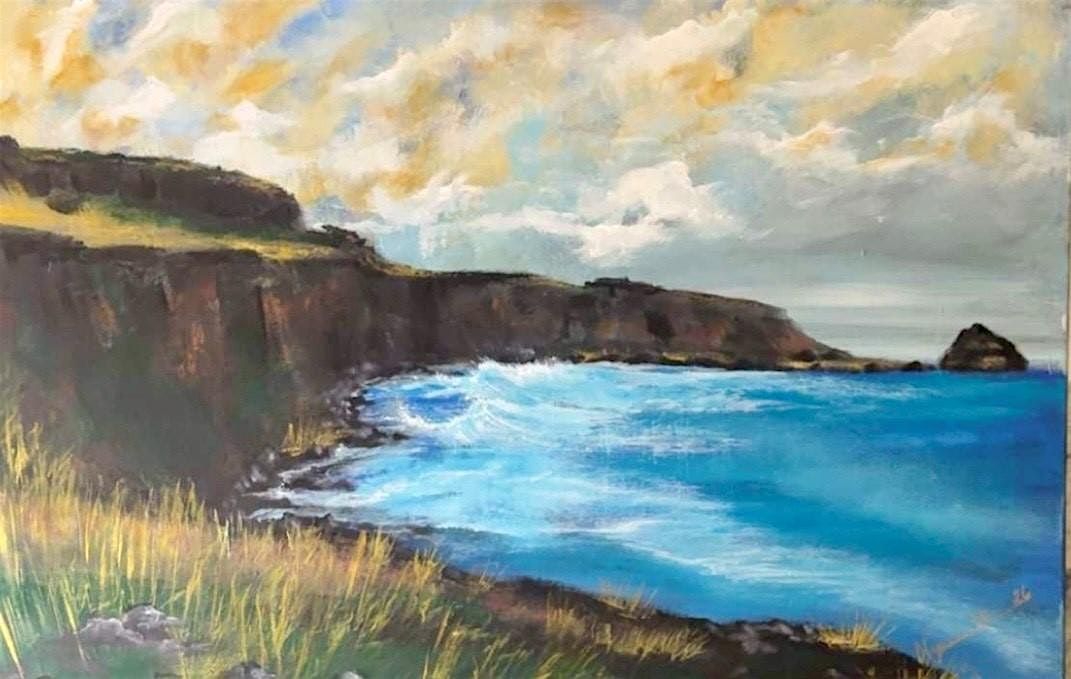 Join us for a fun in-person night of creativity and drinks! It's a Bob Ross Tribute "Moher Cliffs of Ireland," where you'll get to channel your inner artist while sipping your favorite beverage. Perfect for a chill evening out with friends or a cool solo adventure. No experience needed—just bring your enthusiasm and get ready to paint happy little trees! Don't forget to dress up like the Bob! Subject painting by Nyree drawing held at the end of the class!