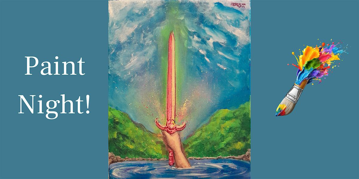 Dive into the legend of the Lady of the Lake as she rises from shimmering waters, offering the legendary Excalibur in a blaze of vibrant color. In this fun and easy acrylic paint-and-sip experience, you’ll create your own epic masterpiece — no experience necessary. Jay will guide you step-by-step through painting the mystical lake scene, and then the real magic begins: you get to design and paint Excalibur however you imagine it. Fiery and enchanted? Celestial and glowing? Dark and mysterious? The sword is yours to envision.