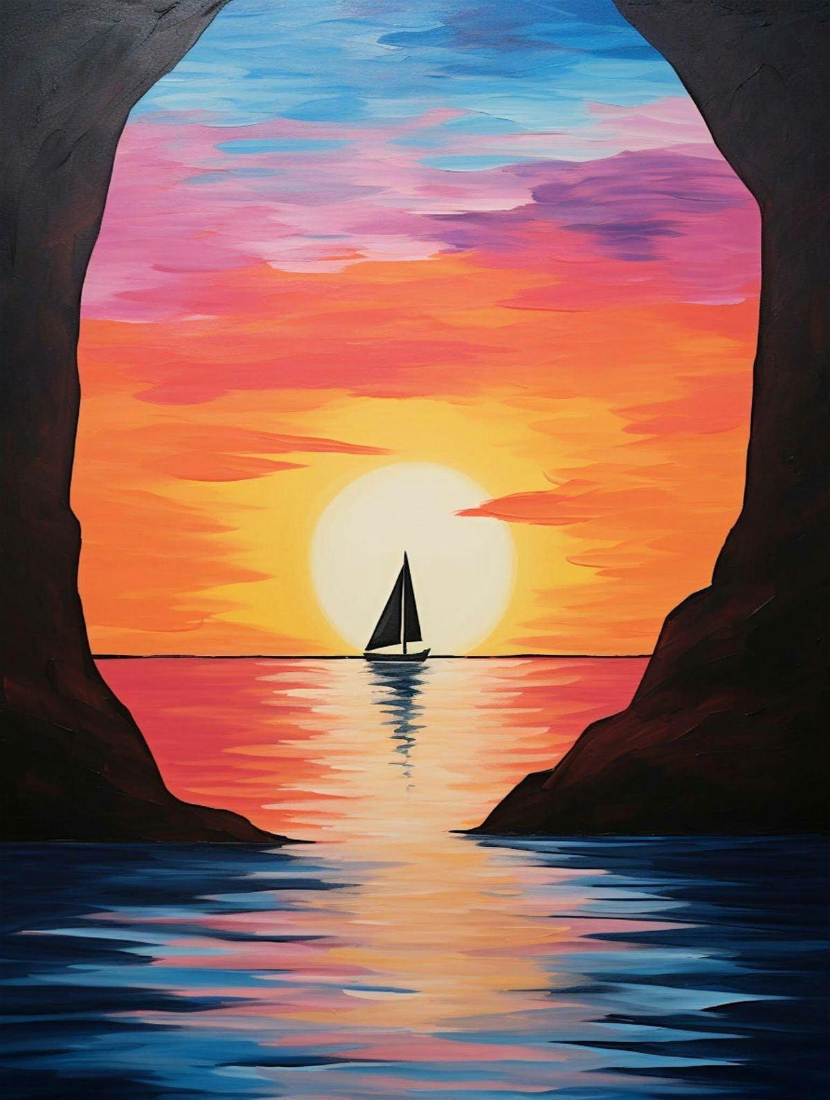 Get ready for an awesome evening of creativity and fun! We'll be creating this beautiful canvas together, step-by-step. Whether you're a pro or just looking to try something new, this is the perfect chance to paint, relax, and meet cool people. It's an in-person event, so bring your vibe and let's make some art magic happen!