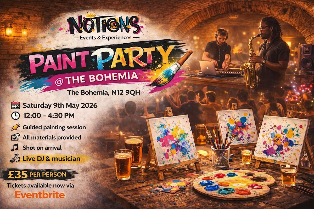 Get ready for an afternoon of painting, music and party vibes at The Bohemia. This isn’t your typical paint class – expect a live DJ, musician great atmosphere and plenty of energy while you create your own artwork.