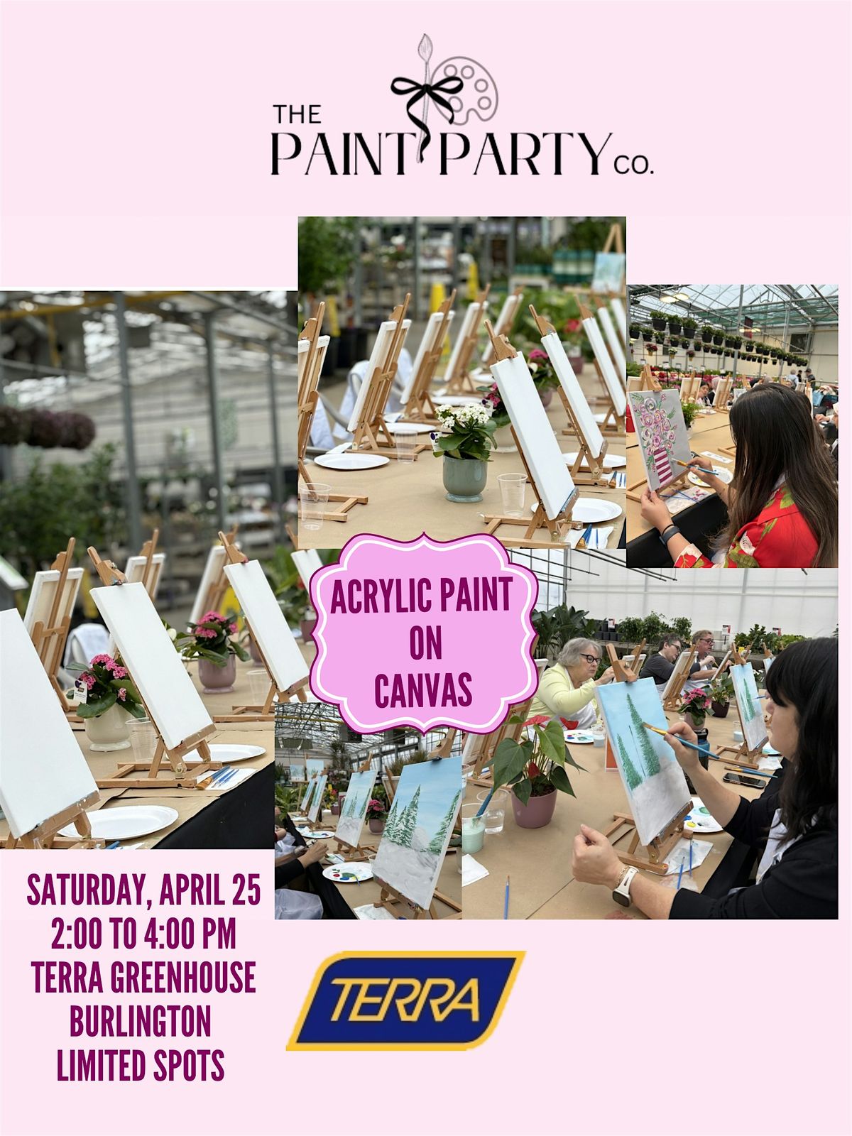 Join us for a relaxing and creative Paint on Canvas experience in the beautiful, light-filled setting of Terra Greenhouse. This guided paint party is designed for all skill levels — whether you’ve never painted before or just want a fun, stress-free night out.