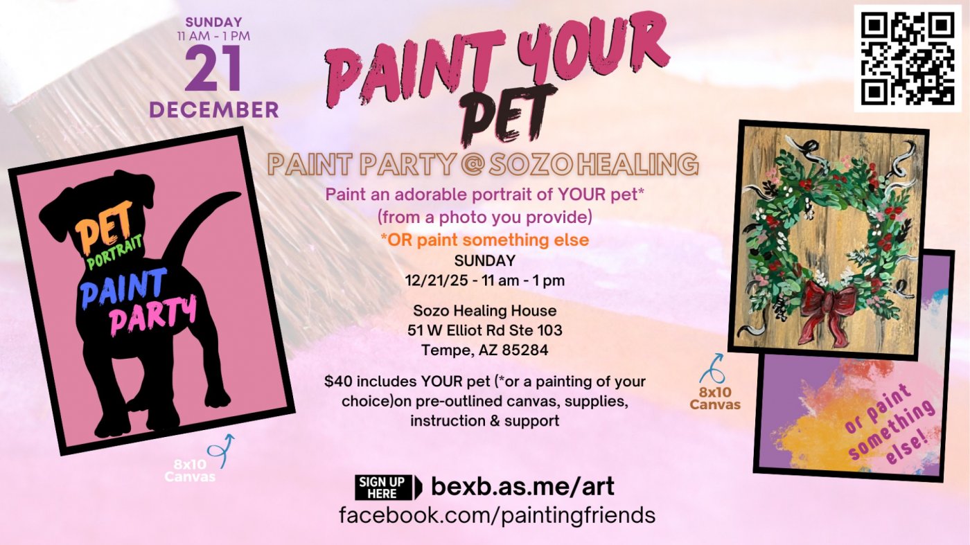 No pet? No problem - still come paint with us. You can paint a Dark Desert Scene or a Holiday Wreath or go to facebook.com/PaintingFriends to find what you'd like to paint & let me know