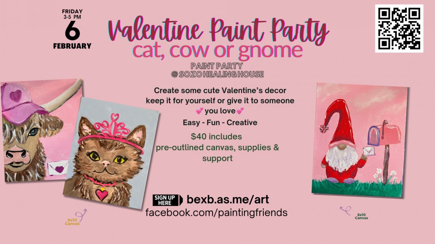 πGet into a lovely "moo"-d - or "purr" as you paint! Or just get CUTE + creative at this Valentine's (or Galentine's) themed Paint Partyπ