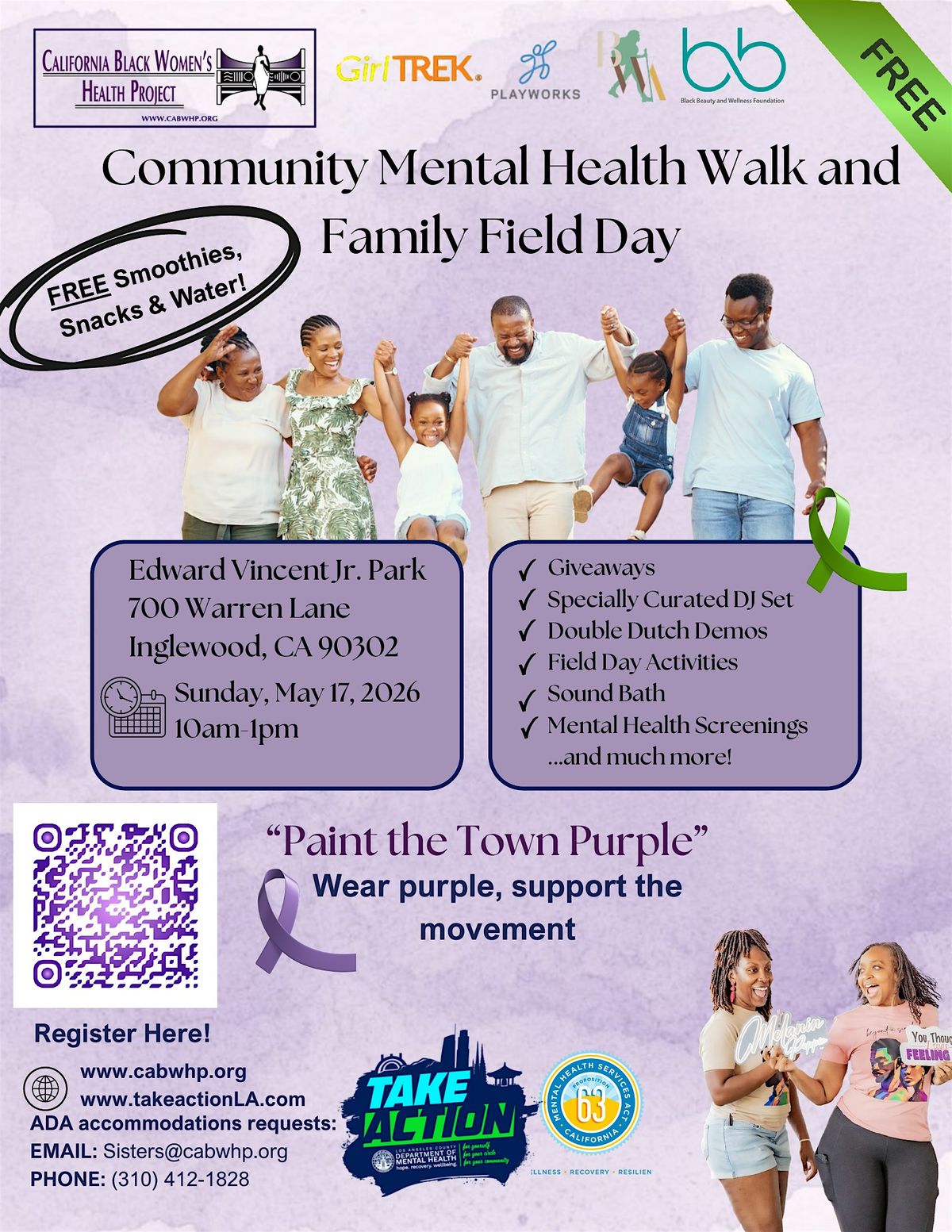 In partnership with Black Women Adventures, California Black Women’s Health Project, GirlTREK, Playworks SoCal, Black Beauty & Wellness Foundation, Take Action LA, and in collaboration with the LA County Department of Mental Health, this event brings the community together to prioritize mental, emotional, and physical wellbeing ✨